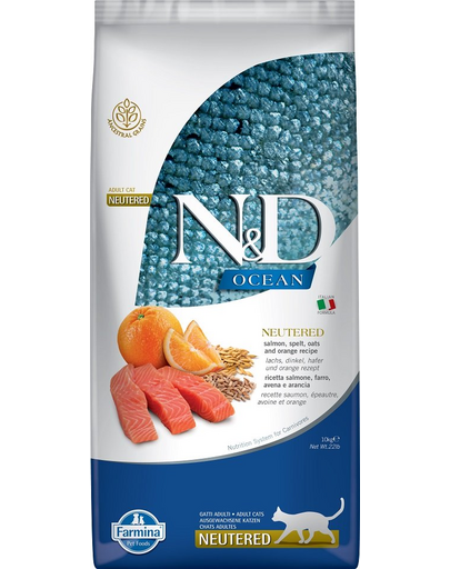 FARMINA N&D Ocean Adult Cat Neutered 10 kg Hrana pisici sterilizate, somon, spelt, ovaz si portocala